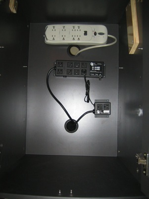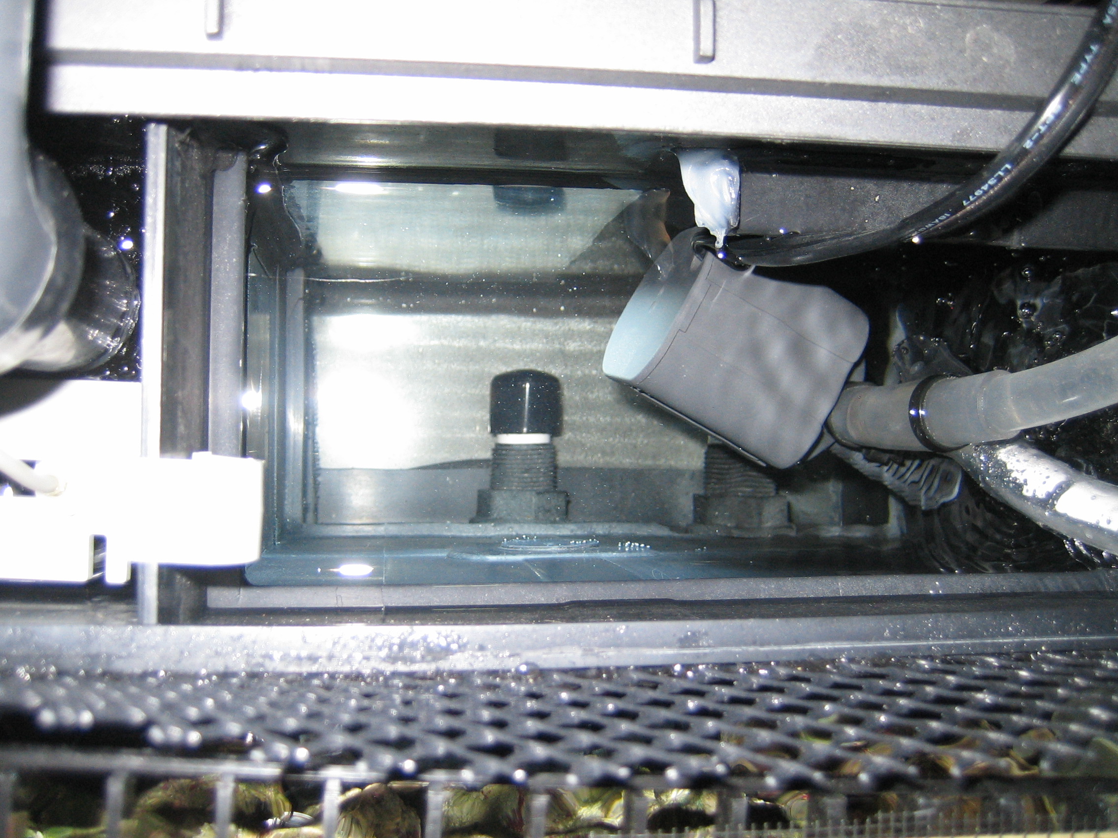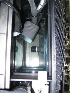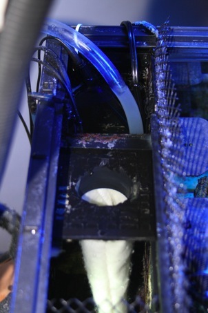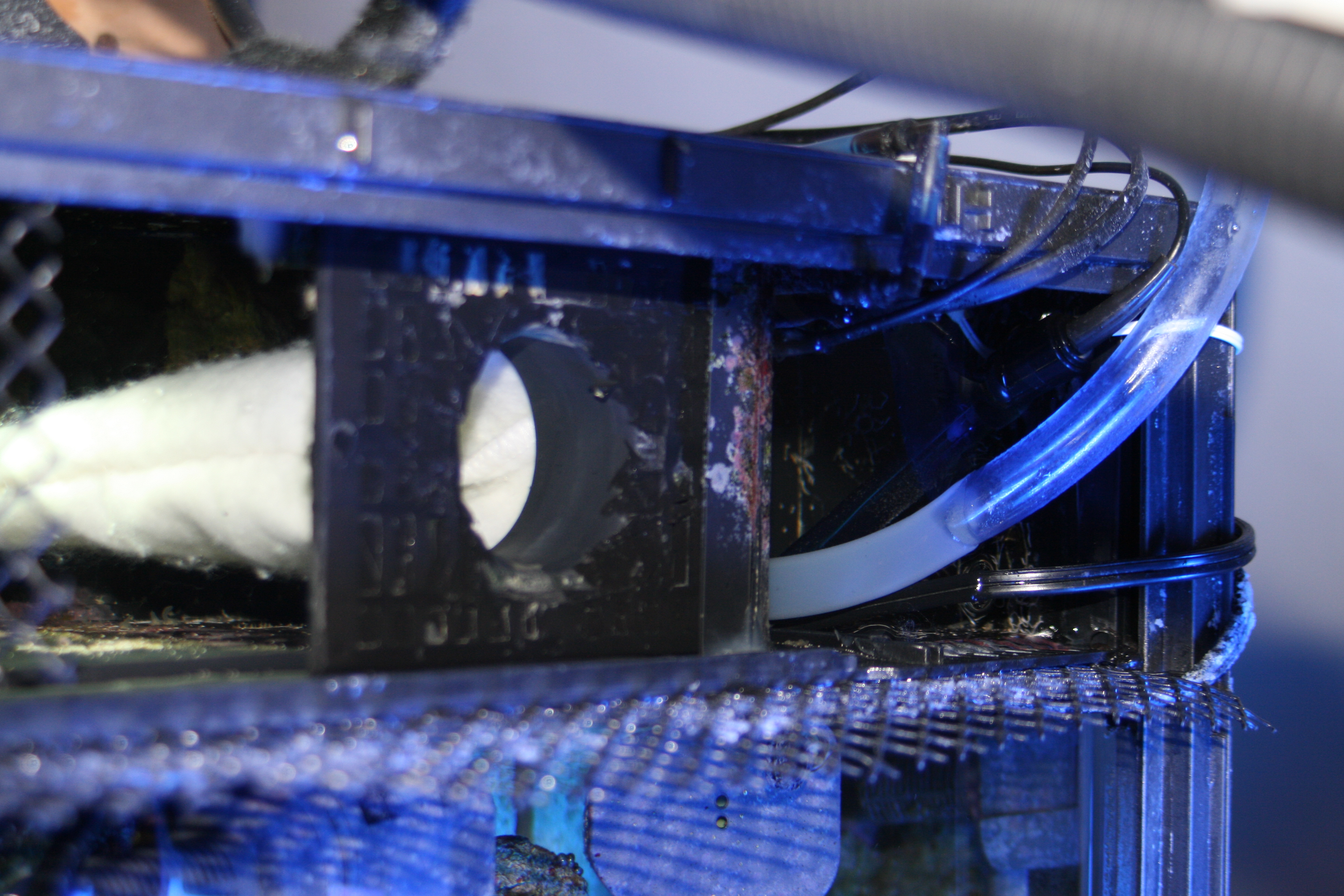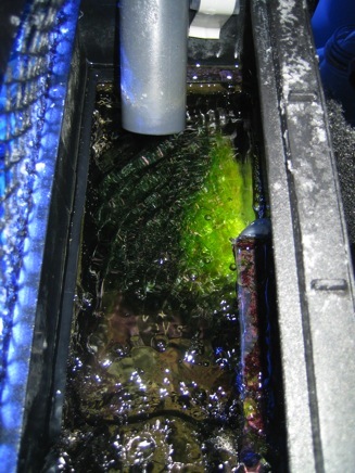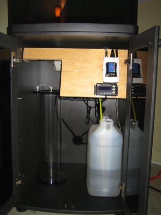 I modified the sump compartment to allow me to put in a lot of stuff... larger felt filter. large protein skimmer, heater, refugium for chaeto and live rock, external pump and chiller, auto top-off, PH probe, um what else oh yeah, calcium reactor.