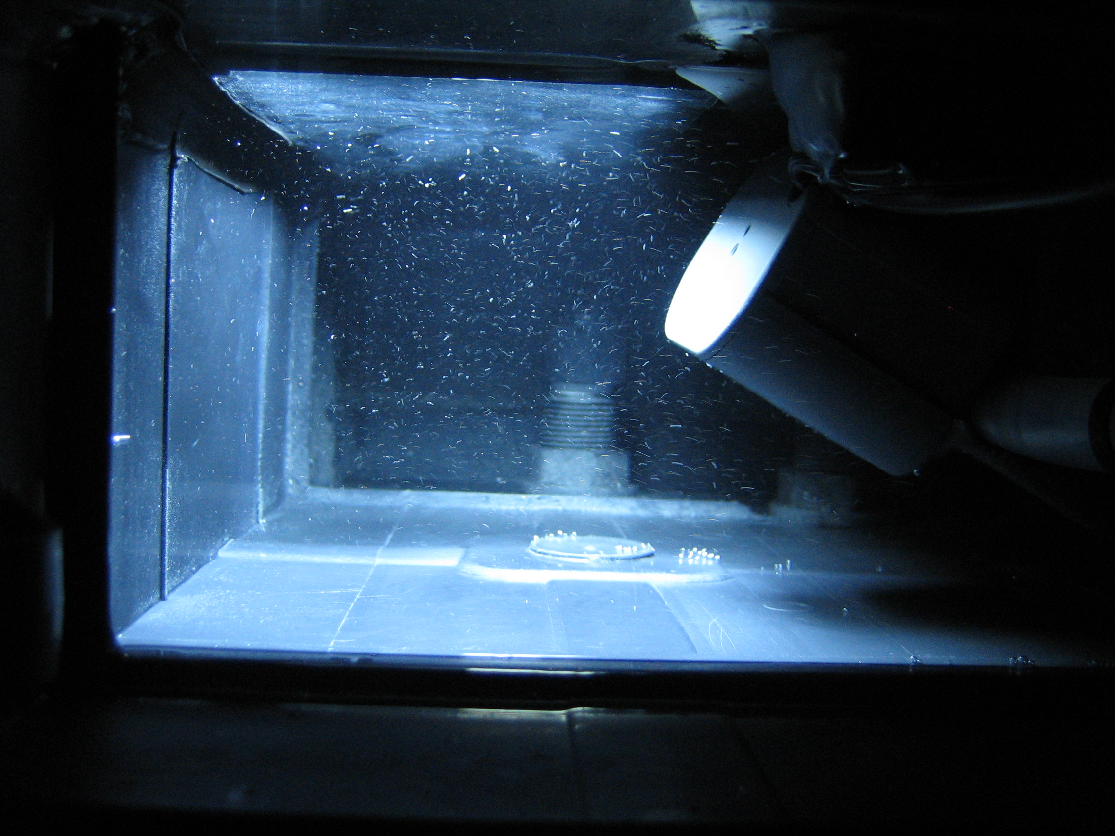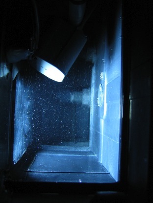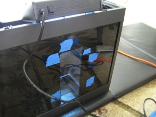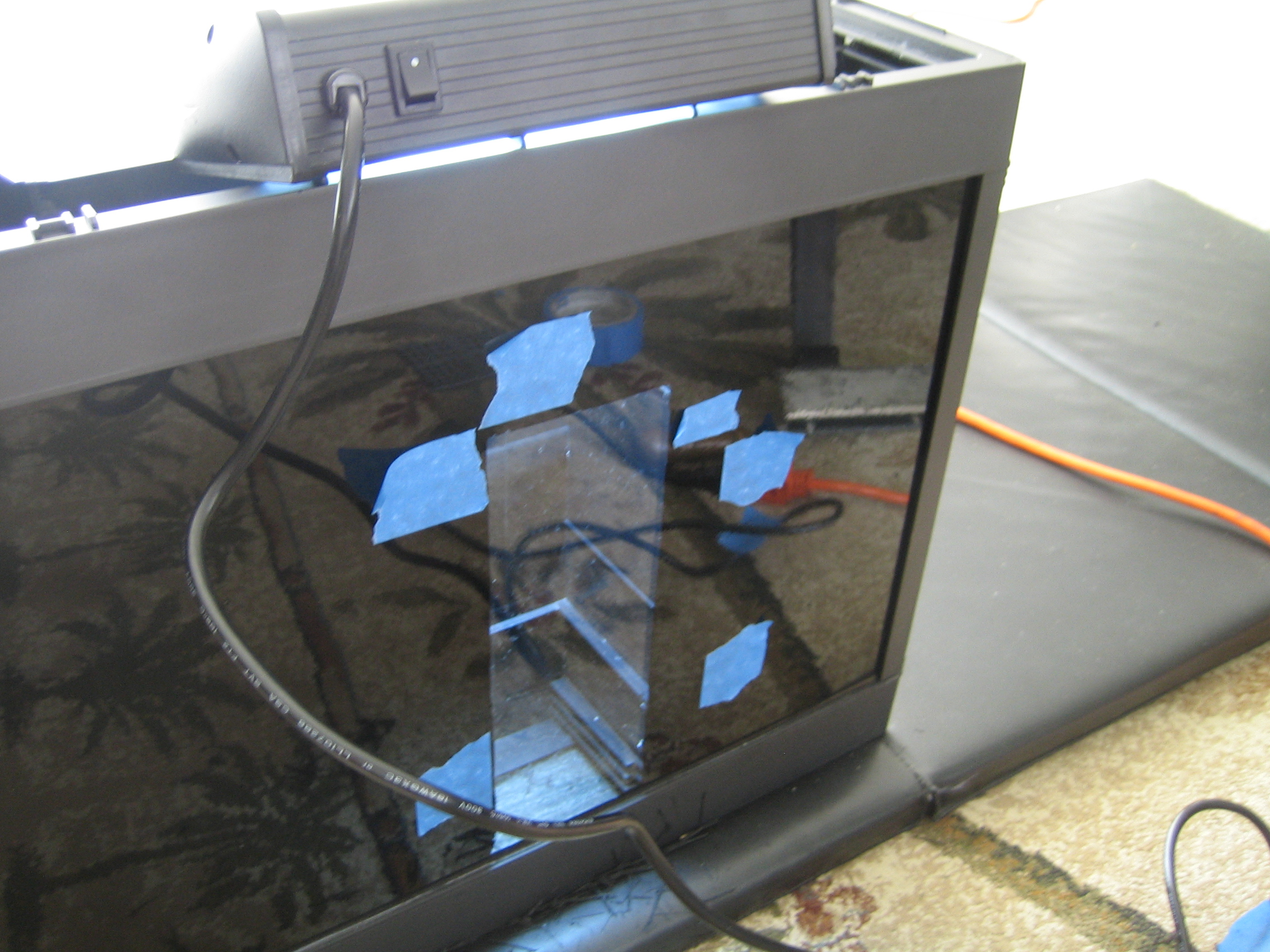 Scraping away paint on the back glass for refugium and 9watt compact light to grow chatemorph.