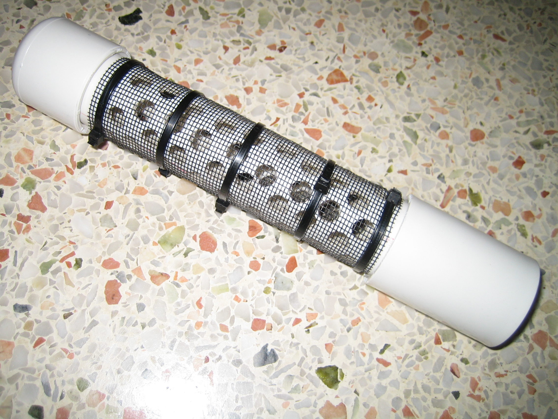 Filtersock insert and sock. I made the insert out of parts that I removed from the back of the BC29 and a  2 inch bulkhead.